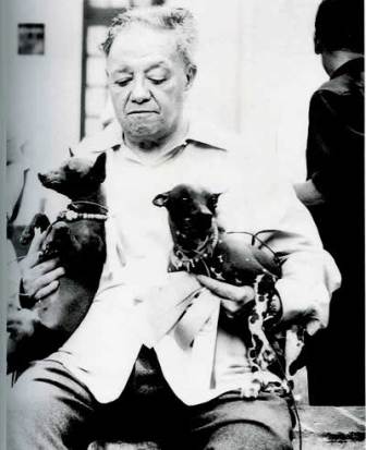 La segunda vez que vi un xoloesquintle fue en los brazos de Diego Rivera. Lo vi en una foto en blanco y negro. Parece que al grandulón le encantaban y fue él quien le mandó el primer xolo a su amiga Dolores Olmedo, en 1954. Se llamaba Citali y los que hoy andan sueltos por el jardín del museo descienden de ella. Ella es la de la estatua y los que retozan alrededor están vivos aunque parezcan de cemento.